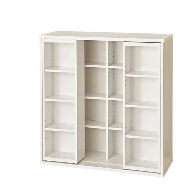 ◆前面・後面に分かれて収納できる、前面スライド式本棚です。