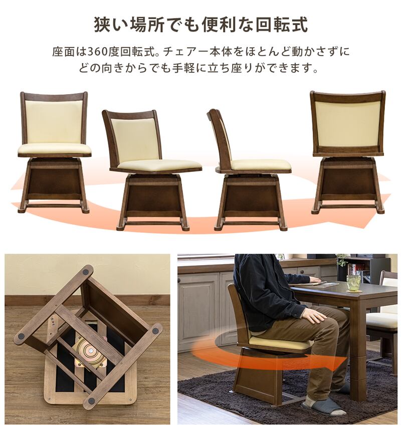 ダイニングコタツと併用した際に、熱が逃げにくくなっています